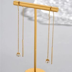 These elegant gold drop earrings add a touch of sophistication to any outfit. Perfect for any occasion.
