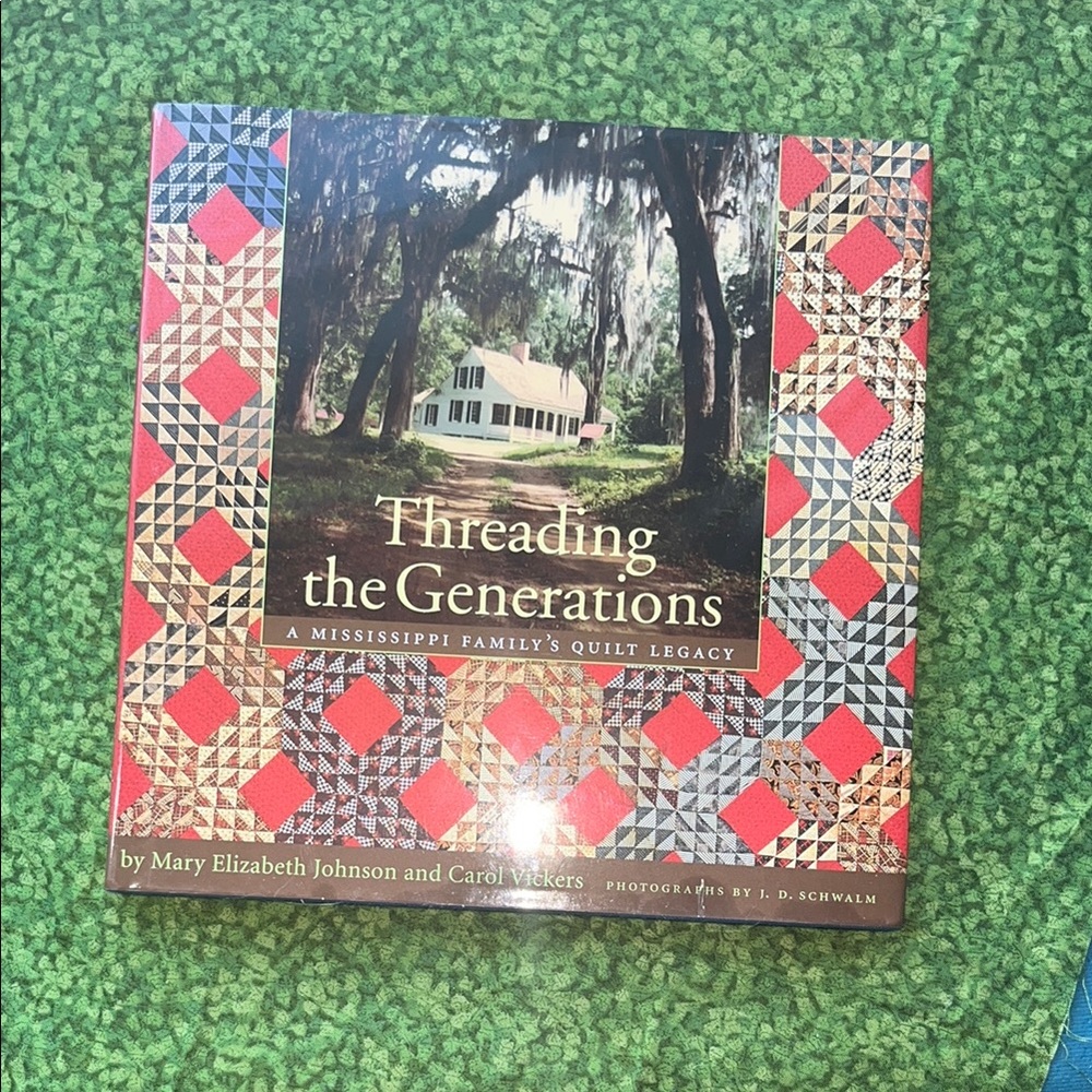 Explore the rich quilt legacy of a Mississippi family with 'Threading the Generations.' This beautifully crafted book features a vibrant red and black cover, perfect for any home library.