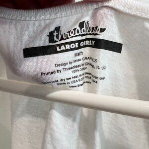 Classic Threadless "Math" design. Worn at most 1-2 times. 100% cotton. Size large. Measurements: PTP 17", 23" length
