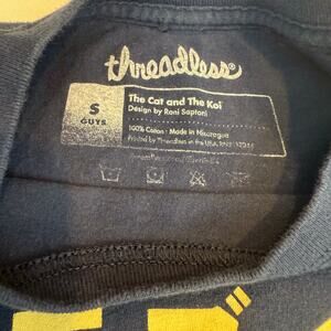 Threadless Navy Cat and Koi Asian Inspired Graphic Print Short Sleeve T Shirt