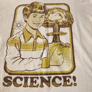 Threadless Off White Tshirt With Science Nuclear Bomb Graphic Size Medium, shirt is in like new condition