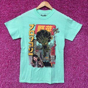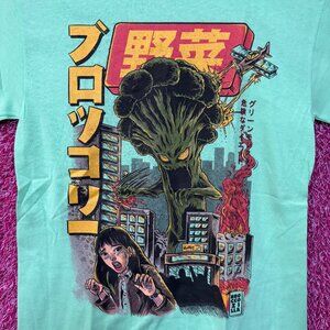 Threadless The Broccozilla Kaiju Vegetable Mint Green T-Shirt Small . Generally measures 18 inches pit to pit 27 inches long. Amazing graphic design shirt. Japanese lettering spells "Vegetable", and "Dangerous Green Diet".New never worn overstock in great condition