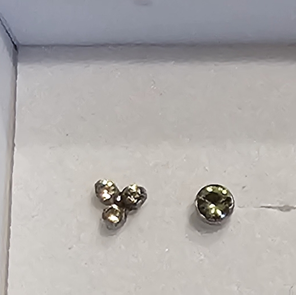 Two pairs of threadless ends. Trinity is champagne titanium and the other is a peridot gem. purchased from piercing studio.