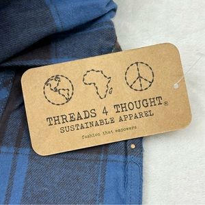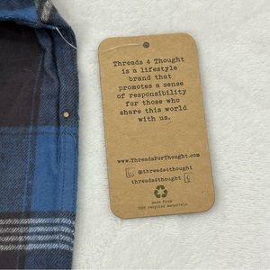 Threads 4 Thought Blue Plaid Flannel Organic Long sleeve Button Up Shirt Mens M