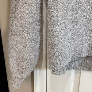 Heathered gray crew neck sweater. Soft texture. Perfect for layering.
