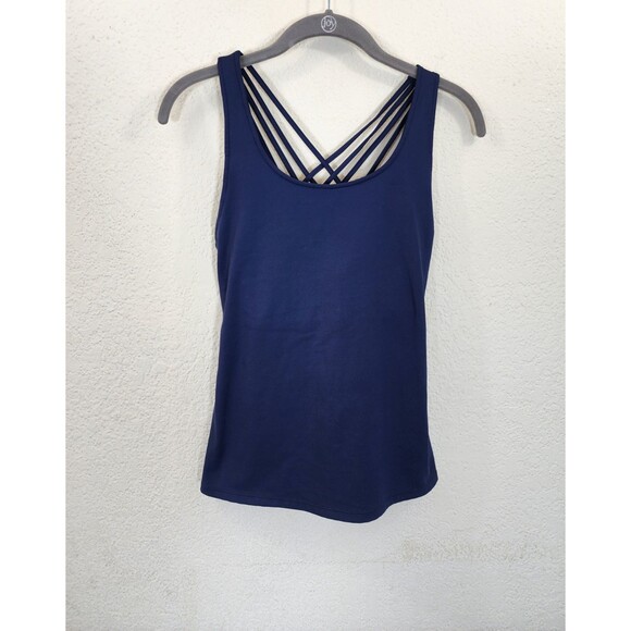 Threads 4 Thought ReActive Tank S Navy Blue Strappy Back Shelf Bra Sustainable