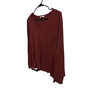 sustainable clothing, organic cotton top, modal blend shirt, Threads 4 Thought top, ribbed long sleeve top, V-neck casual top, eco-friendly fashion, rust red shirt, women's XS top, versatile long sleeve, lightweight casual wear, fall wardrobe staple,