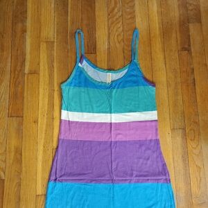 Sleeveless Tank Dress Stripes Colorful Bright Summer Maxi Hi Low