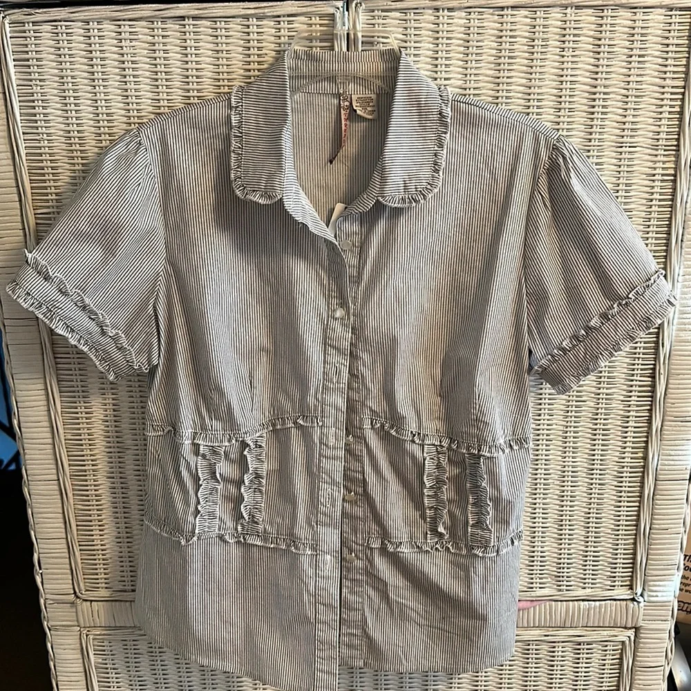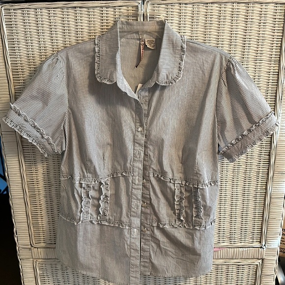 Brand new 2000s emo top from Hot Topic! Ruffle accents, short sleeve, button up. Perfect for professional wear or for everyday!