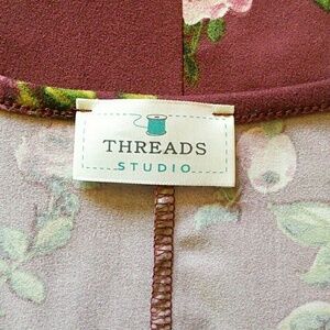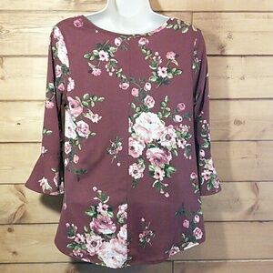 Threads Studio | Burgundy Floral Peplum Sleeve Top M