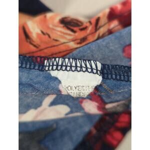 Threads Studio Womens Navy Floral Bell Sleeve Top 3/4 Ruffle Shirt Medium