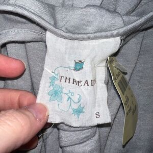 This listing is for a Threads tank top in a size small. This shirt features a pleated front and a v-neck collar.