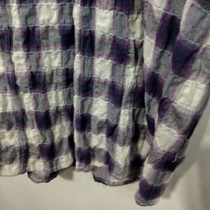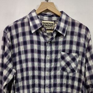 Threads for Thought Organic Cotton Plaid Button Shirt Mens XL Purple White Retro