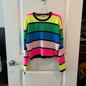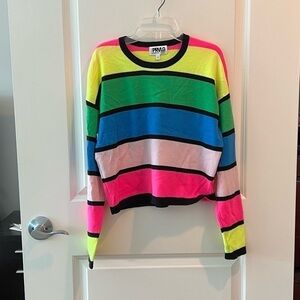 Colorblocked neon stripes energize this vibrant Threads of PRVLG sweater in a cropped silhouette.