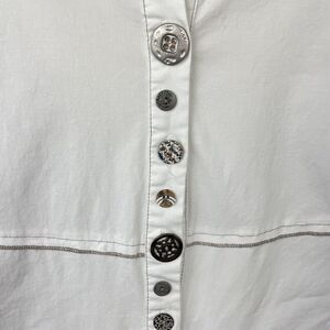 This Threadz Australia tunic top is perfect for any casual occasion. With a solid ivory color, flared sleeves, and a collared neckline, it is a unique addition to any wardrobe. The button-up closure and mixed fabric type make it perfect for all seasons and occasions. The tunic top features a boho meets classic theme, with accents such as unique buttons and a textured fabric. It is made of a cotton blend and is machine washable for easy care. The size is medium and the fit is regular, making it a comfortable choice for any woman. This tunic top is perfect for festivals and gatherings, or for a casual day out with friends.