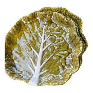 Three (3) Bordallo Pinheiro (Portugal) 'Cabbage' Salad Plate Olive - Vintage