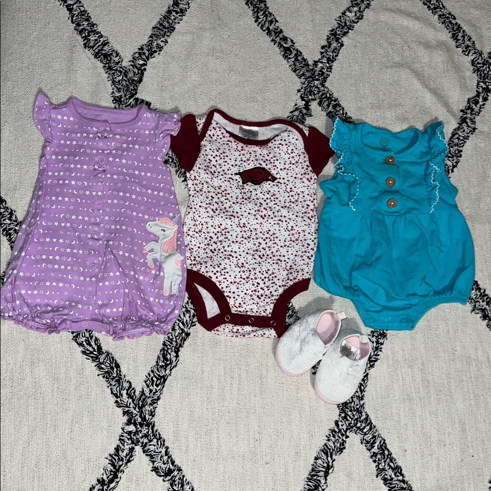 Three 3-6M Baby Shoes & Rompers Rivalry Threads Razorbacks Carters Wonder Nation