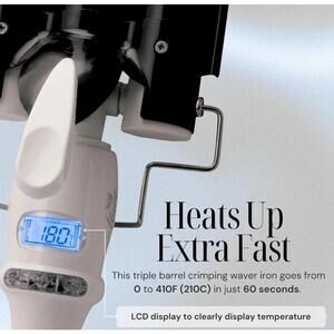 Three Barrel 1” Curling Iron Wand Hair Waver Crimper LCD Display 410 Degree-NEW.