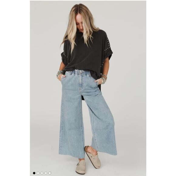 These wide leg boho jeans are made for everyday wear and pair with any of your favorite tops.