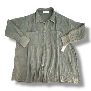 Three Birds Nest Marco Button Down Tunic Oversized Green Distressed Dress Size L