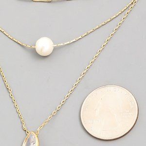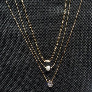 Three Chain Layered Necklace with Simple Pendants