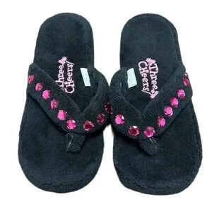 Girls size large slippers. These are fuzzy flip flop slippers with rhinestones. These are NWOT.