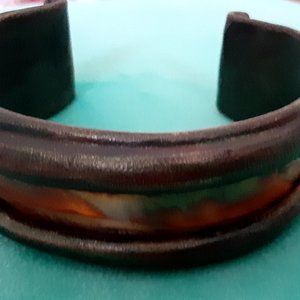 Here are three nice Bracelets in used but very good condition. There is a Pewter Celtic, Leather with metal insert and a Sergio Lub made in USA Copper and Silver Bracelets.