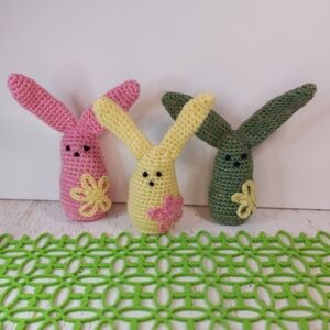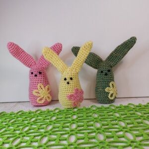 Included: Pink Bunny with Yellow Flower, Green Bunny with Yellow Flower, Yellow Bunny with Pink Flower