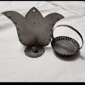 Three Distressed Vintage Primitive Tin Decor Pieces Candle and Tart Holders