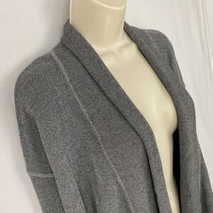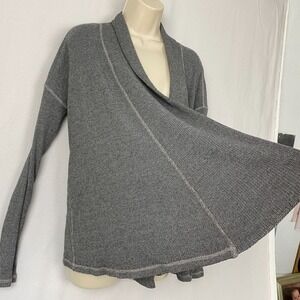 Three Dot Cardigan Sweater Womens Medium Gray Shaker Knit Open Front Minimal