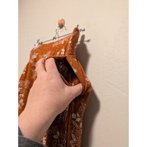 These pants offer a relaxed fit with an elastic waistband, making them comfortable for casual wear. The rust color with floral print adds a touch of style to any outfit. Crafted from rayon, they provide a soft and breathable experience, ideal for warmer weather.