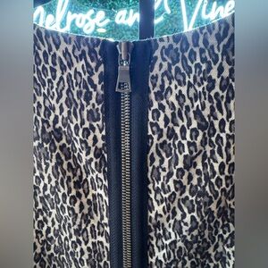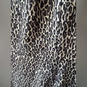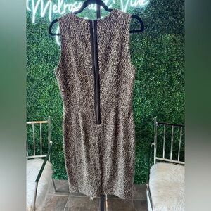 Elegant dress with bold animal print. Features a sleek zipper detail.