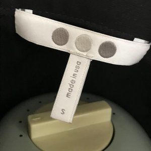 Three Dots black tencel blouse in sz S. Long ties at wrist with grommets. Extended bell style sleeve. Boxy fit with minimalist design. Bronze metal buttons down the front. Plain front style like a mens shirt. Great layering piece. Like new condition, unworn but without tags. Non-stretch mid weight tencel. Check measurements below to ensure a perfect fit.