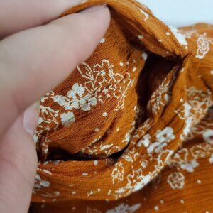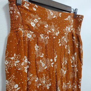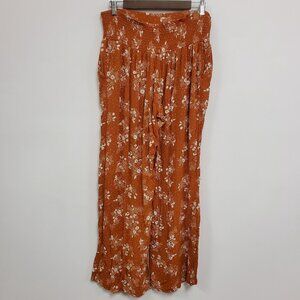 Three Dots Boho Floral Gauzy Pull On Wide Leg Pants Size L Burnt Orange Hippie