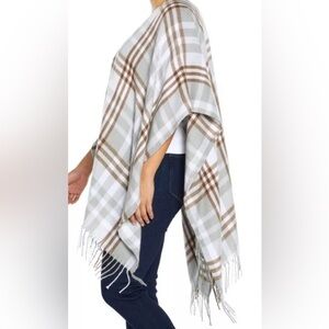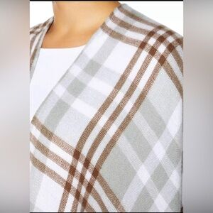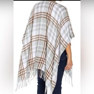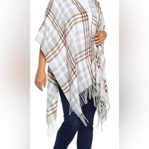 Three Dots Cashmere Blend Wrap Fringe One Size ~ LOUSIA PLAID GREY