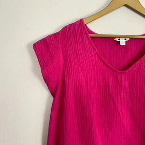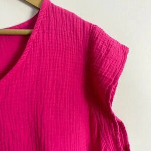 Three Dots Fuchsia Pink Gauze Top