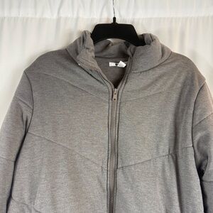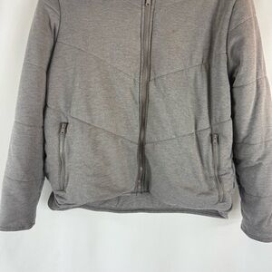 Three Dots Gray Quilted Step Hem Knit Full Zip Jacket Large