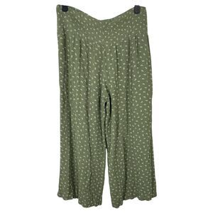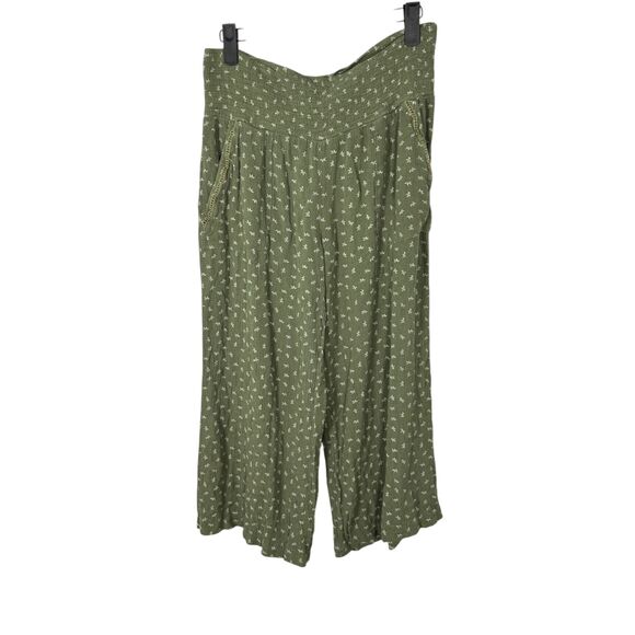 Three Dots Green Floral Wide Leg Flowy Boho Crop Pants Women's Size Medium