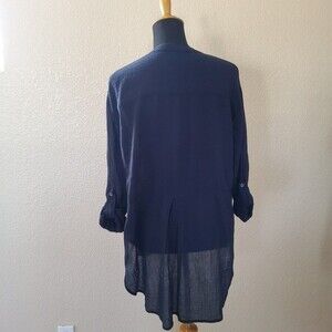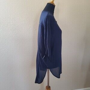 Three Dots Henley Semi Sheer Gauze Tunic Top M Navy Blue New