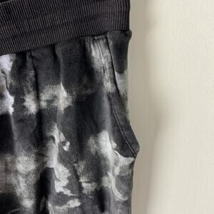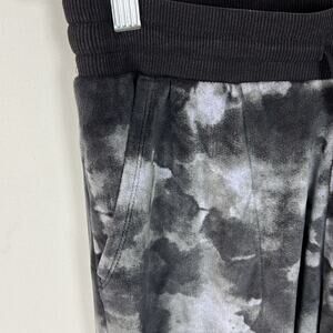 Gently Used Three Dots Joggers. These are a women's small. Cool black and gray tie dye like pattern throughout. Velvet soft exterior. Elastic waistband. 95% polyester, 5% spandex. Inseam is 27”. Waist is 14” laid flat, there is stretch to the waist.