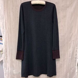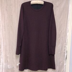 Three Dots L Reversible Knit Long Sleeve Navy Burgundy Reverse Weave Dress