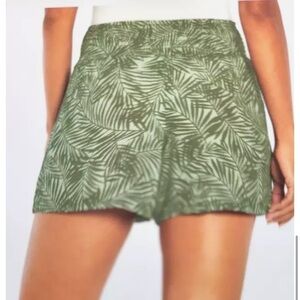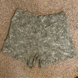Three Dots Leaf Print Shorts Sage Green Sz Large