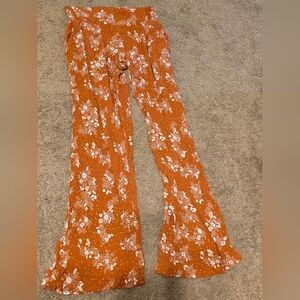 Three Dots Lou & Gray Burnt Orange Floral Wide-Leg Pants | Size S