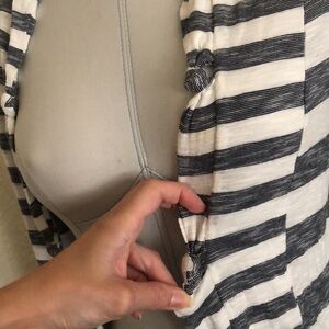 Small hole on left side that has been mended- see picture! Small spot on left lapel.