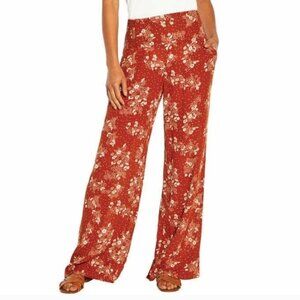 Three Dots Orange Floral Pull On Palazzo Pants Sz L