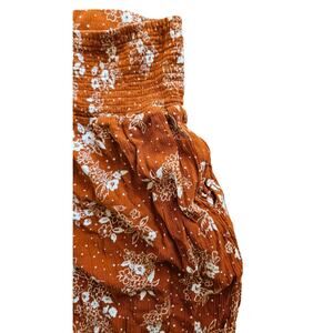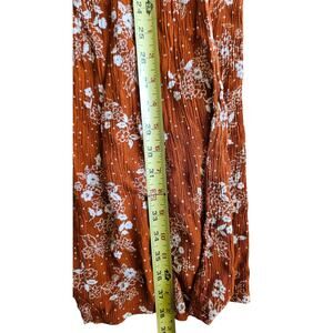 Three Dots Rust Floral Wide Leg Gauze Pull On Elastic Waist Pants Pockets
