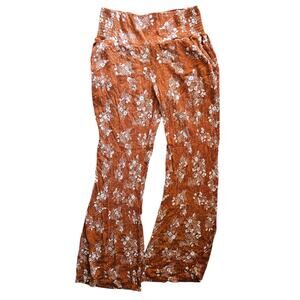 Three Dots Orange Rust Floral Wide Elastic Waist Pants Pockets Size Small