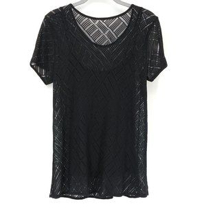 Three Dots Scoop Neck Lace Tee Black Sheer Layer Shirt