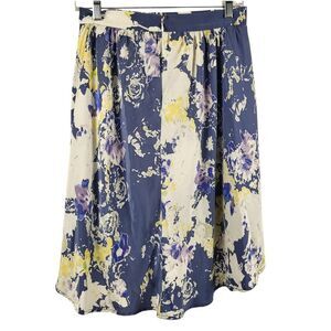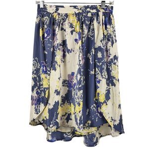 Three Dots Small 100% Silk HiLo Mini Skirt Waterfall Cape USA Made Blues Yellow