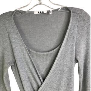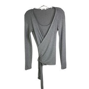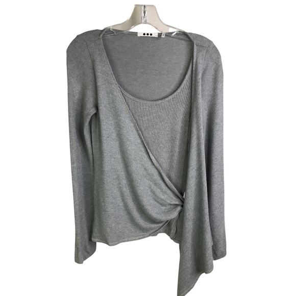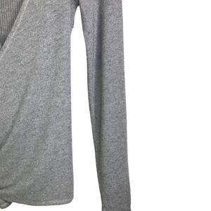 Three Dots Sweater Womens Size XS Gray Wrap Front Tie Long Sleeve Scoopneck